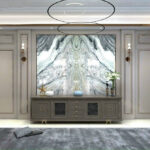 Thiết kế đối xứng với hai tấm đá ghép lại theo dáng đứng, TDDX12 không chỉ thu hút ánh nhìn mà còn làm tăng thêm chiều sâu cho không gian, đặc biệt phù hợp với phòng khách, sảnh hay các khu vực cần tạo điểm nhấn sang trọng. Sản phẩm không có hiệu ứng xuyên sáng, tập trung vào việc tôn vinh sự sắc sảo và tinh tế của từng đường vân đá.